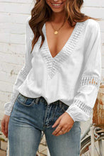 Deep V Neck Crochet Hollow-out Blouse
