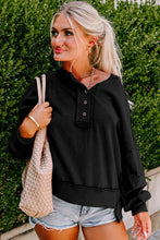 - A crew cut neckline with buttoned detail, long loose sleeves with ribbed cuffs