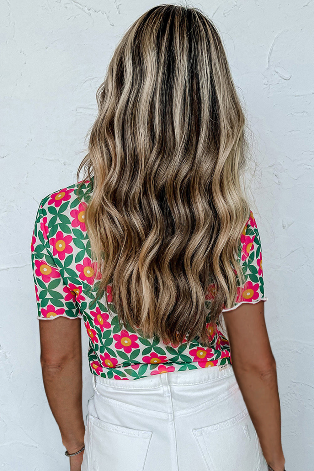 Fiery Red Retro Floral Print Crew Neck T Shirt