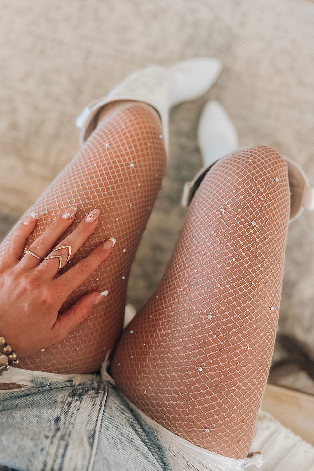Flesh Sexy Rhinestone Fishnet Pantyhose