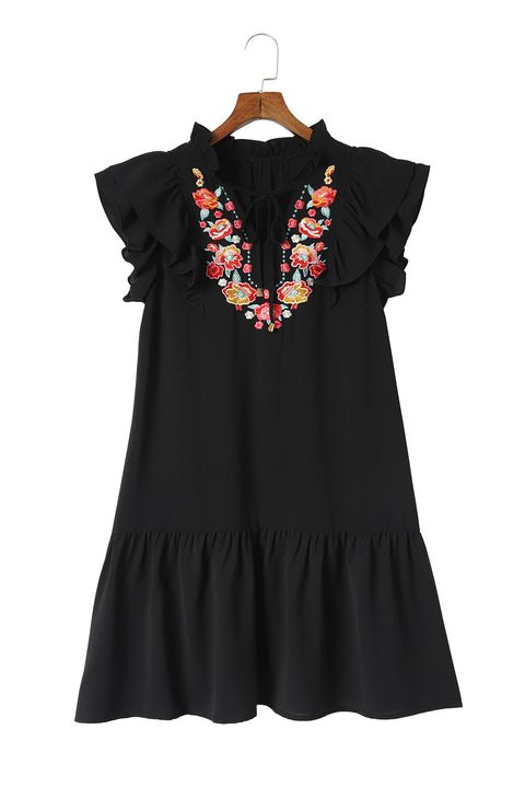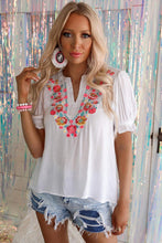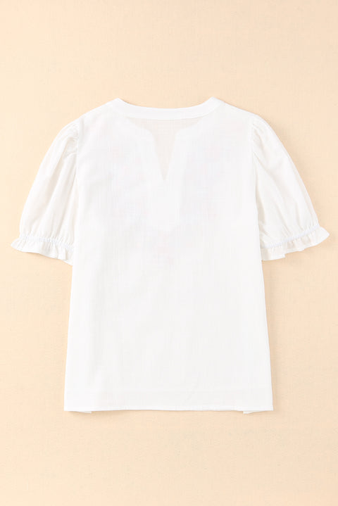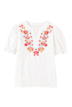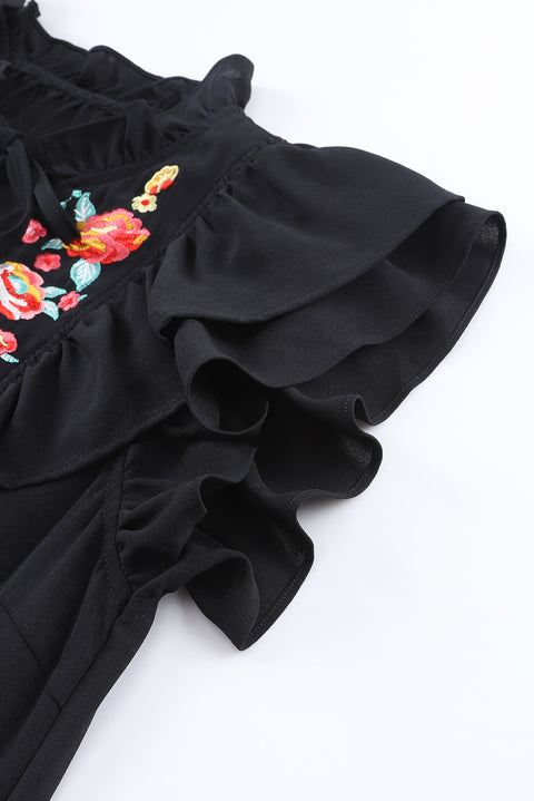 Floral Embroidered Ruffled Puff Sleeve Blouse