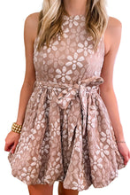 Floral Jacquard Sleeveless Mini Dress with Waist Tie