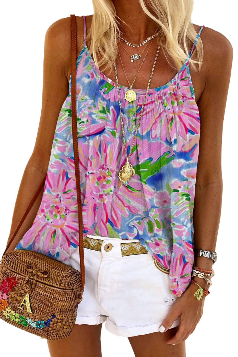 - The vibrant floral print tank top is perfect for your summer days