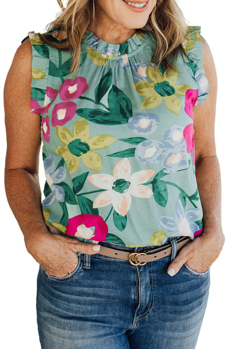 Floral Print Ruffle Trim Tank Top