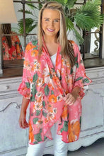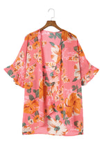 Floral Print Ruffled 3/4 Sleeve Loose Fit Kimono