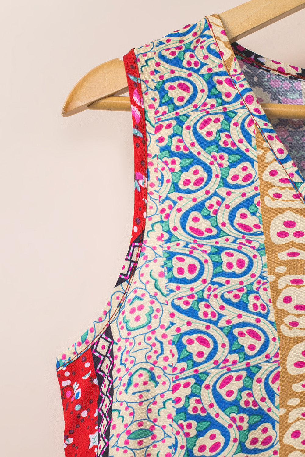 Floral Splicing Flounce V Neck Sleeveless Mini Dress