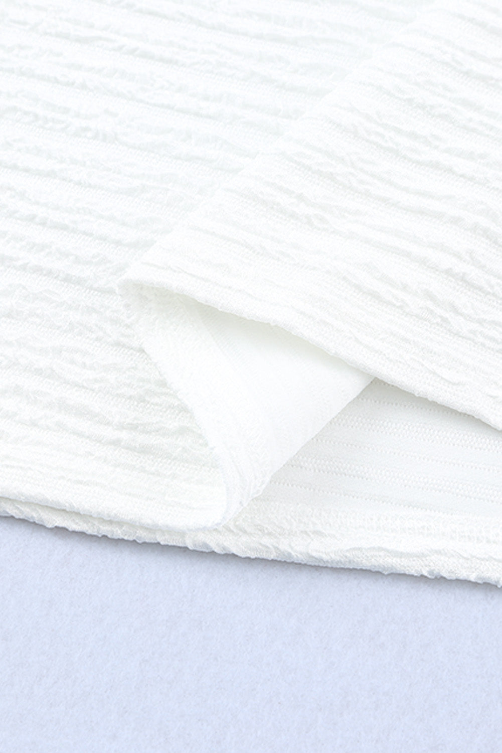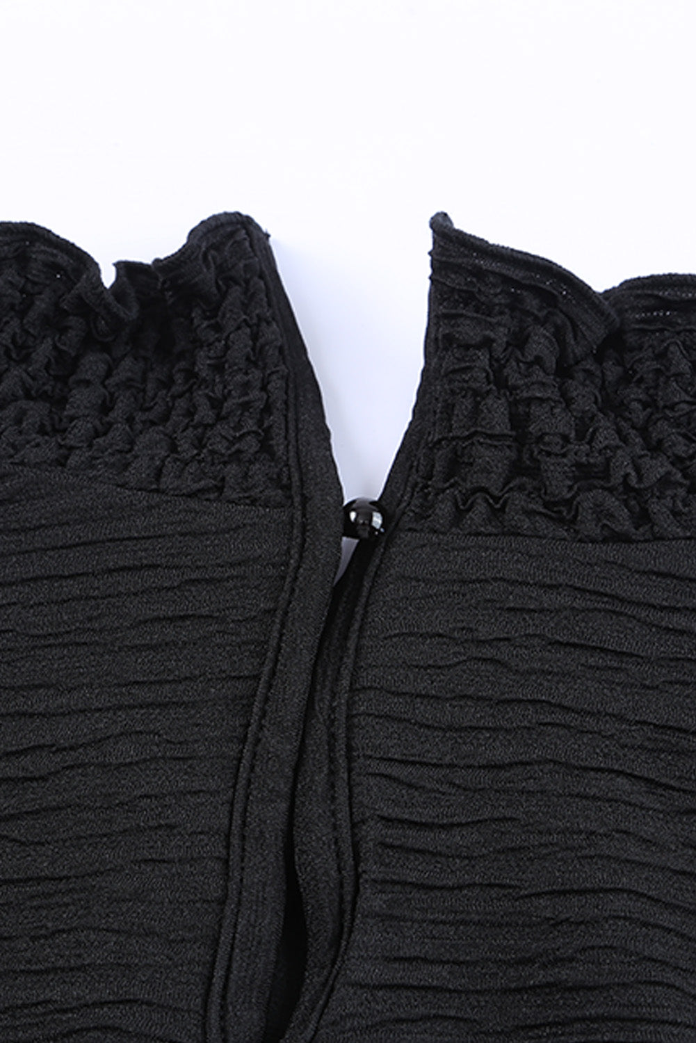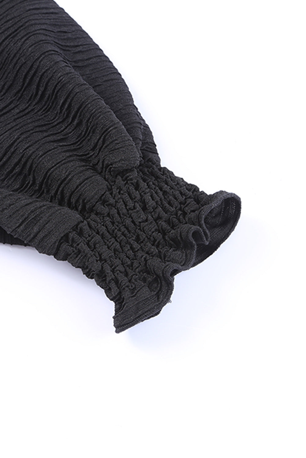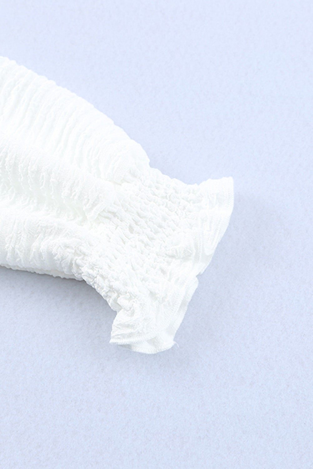 Frilled Smocked Neck Textured Bishop Sleeve Blouse