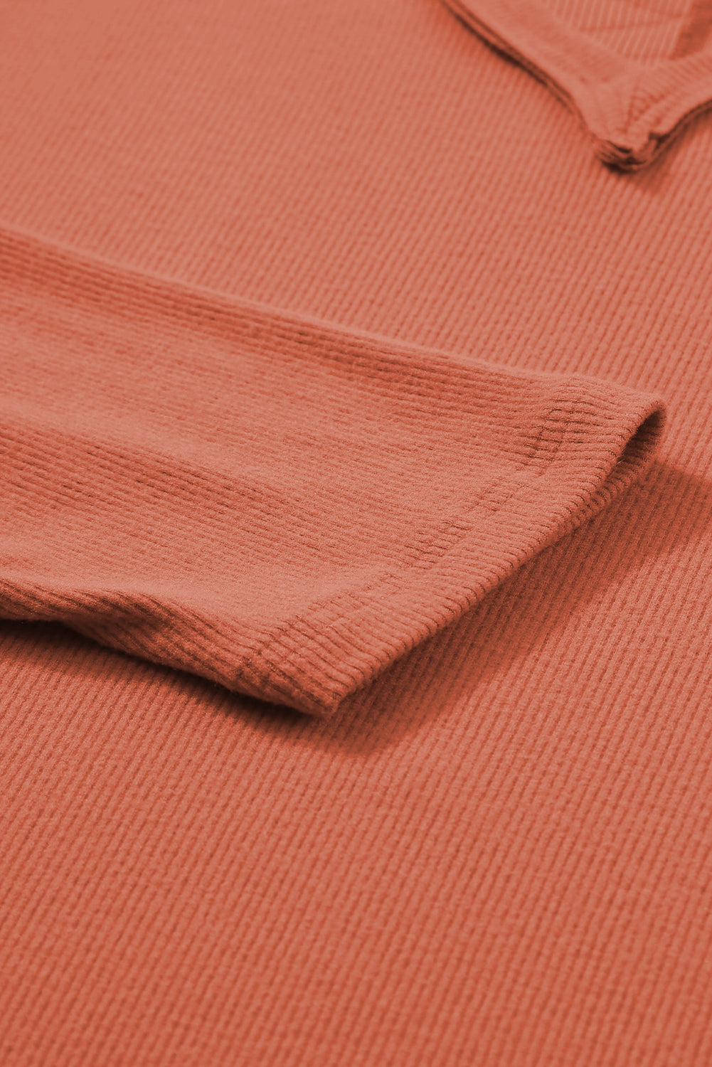 Gold Flame Plus Size Exposed Seam V Neck Long Sleeve Top