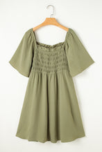 Grass Green Frilly Square Neck Flutter Sleeve Smocked High Waist Plus Size Dress
