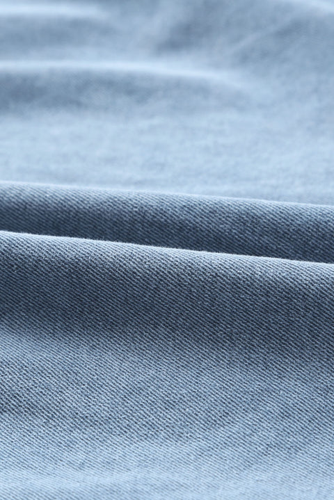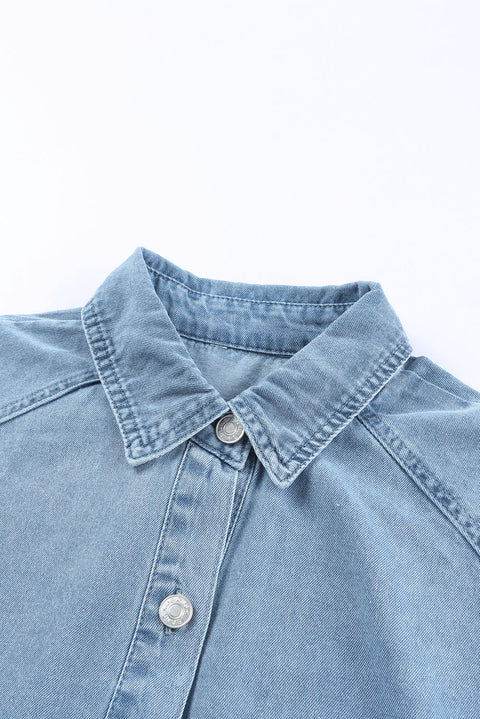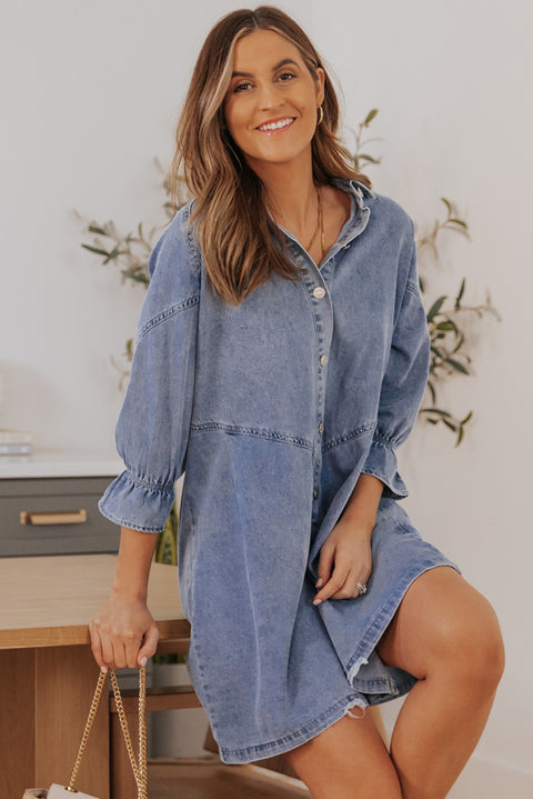 Gray Buttoned Long Sleeve Denim Mini Dress
