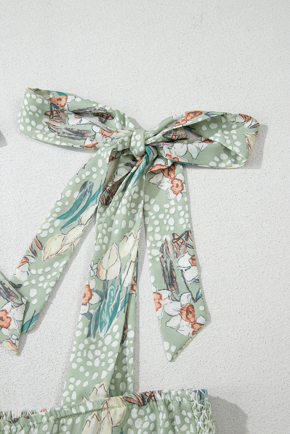 Gray Floral Knotted Strap Smocked Tiered Ruffle Mini Dress