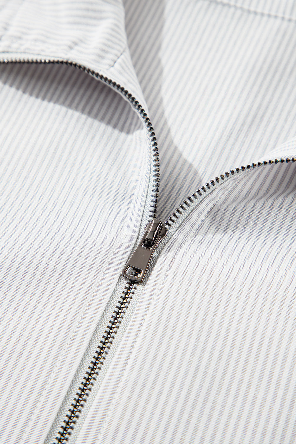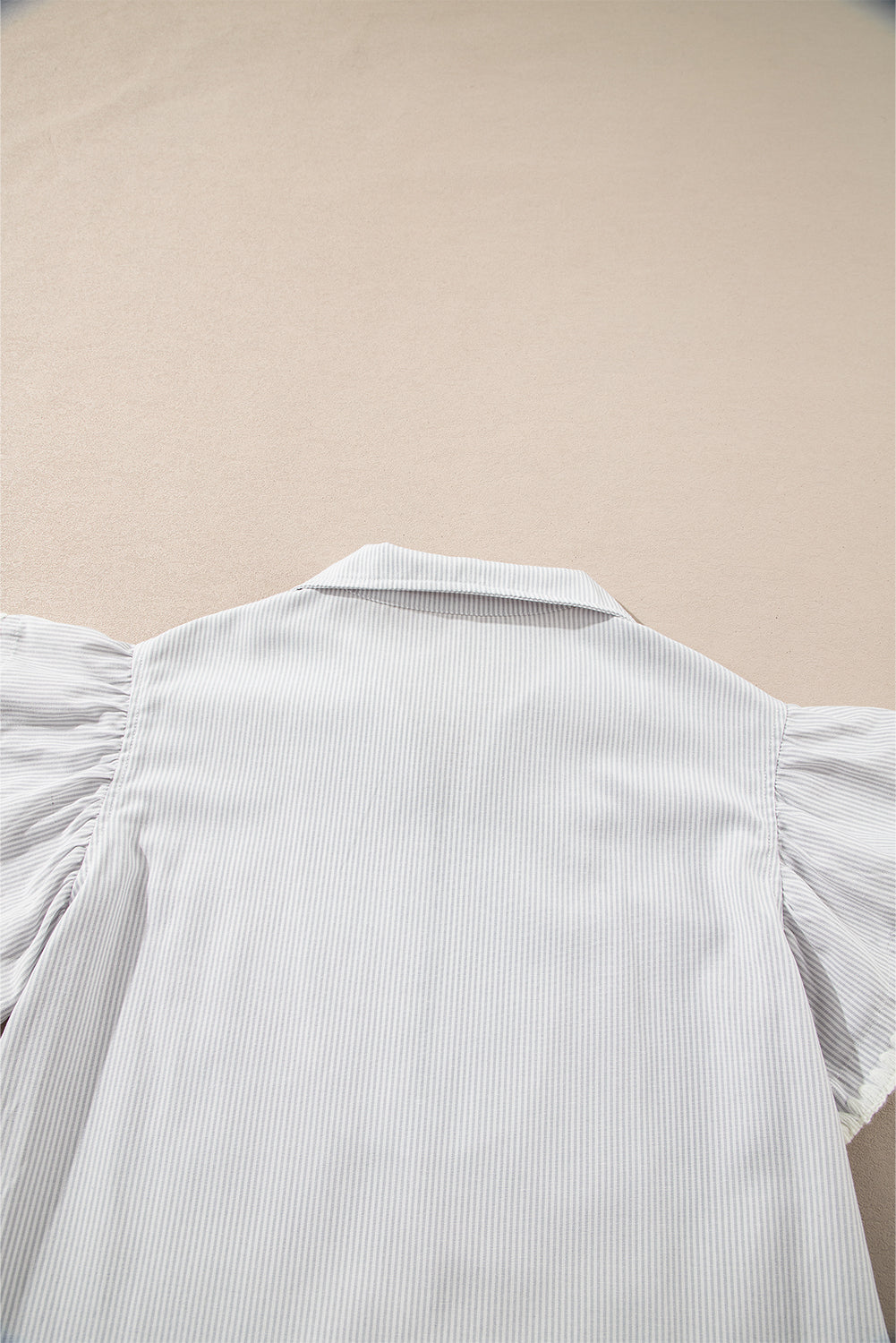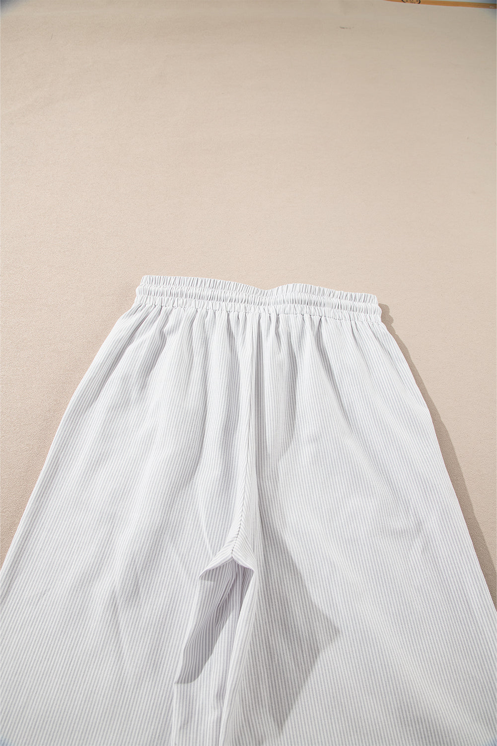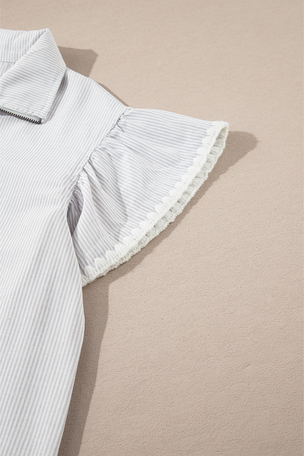 Gray Stripe Zipped up Collar Ruffled Sleeve Tee and Wide Leg Pants 2pcs Outfit
