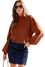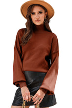 Gray Turtleneck Drop Shoulder Bubble Sleeve Knit Sweater