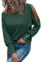 Green Asymmetrical Cut Out Buttoned Long Sleeve Top