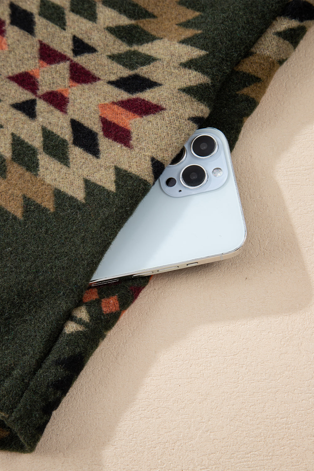 Green Aztec Print Flap Pockets Long Sleeve Shacket