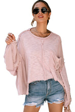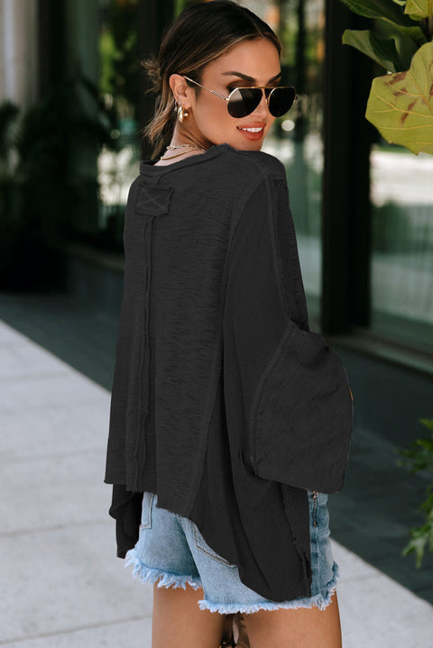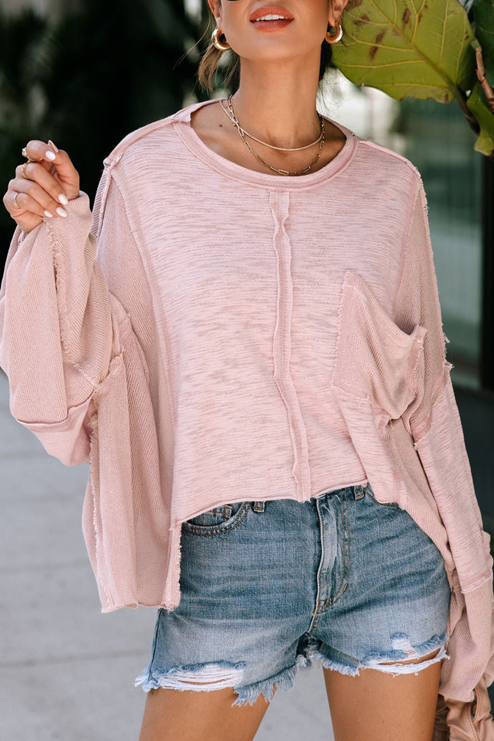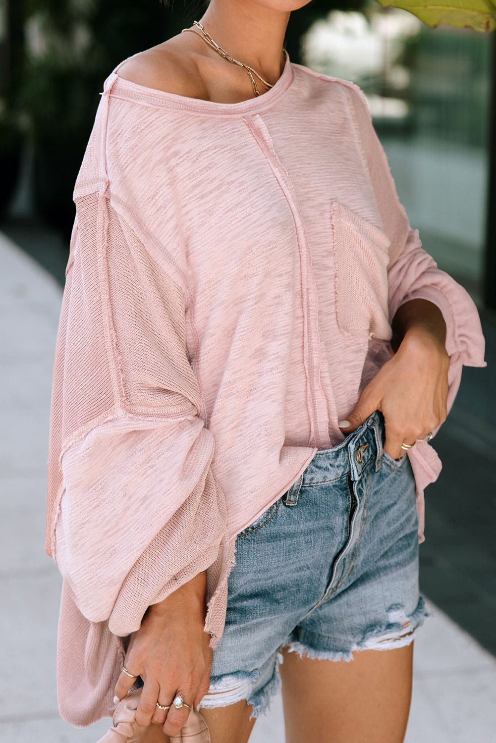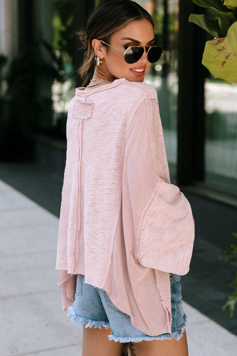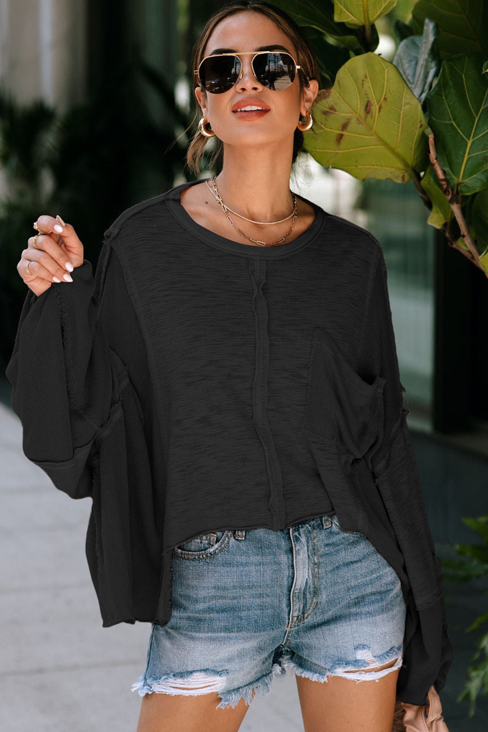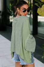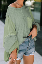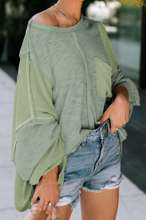 Green Exposed Seam Chest Pocket Loose Sleeve Oversized Top