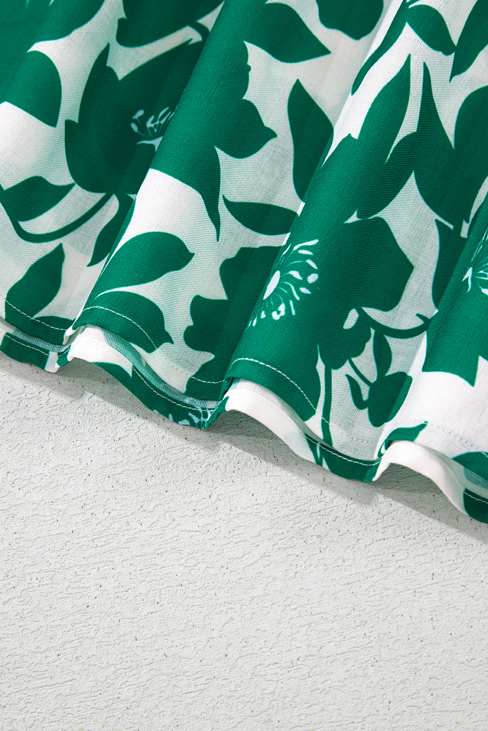 Green Floral Printed Ruffled Short Sleeve Round Neck Loose Blouse