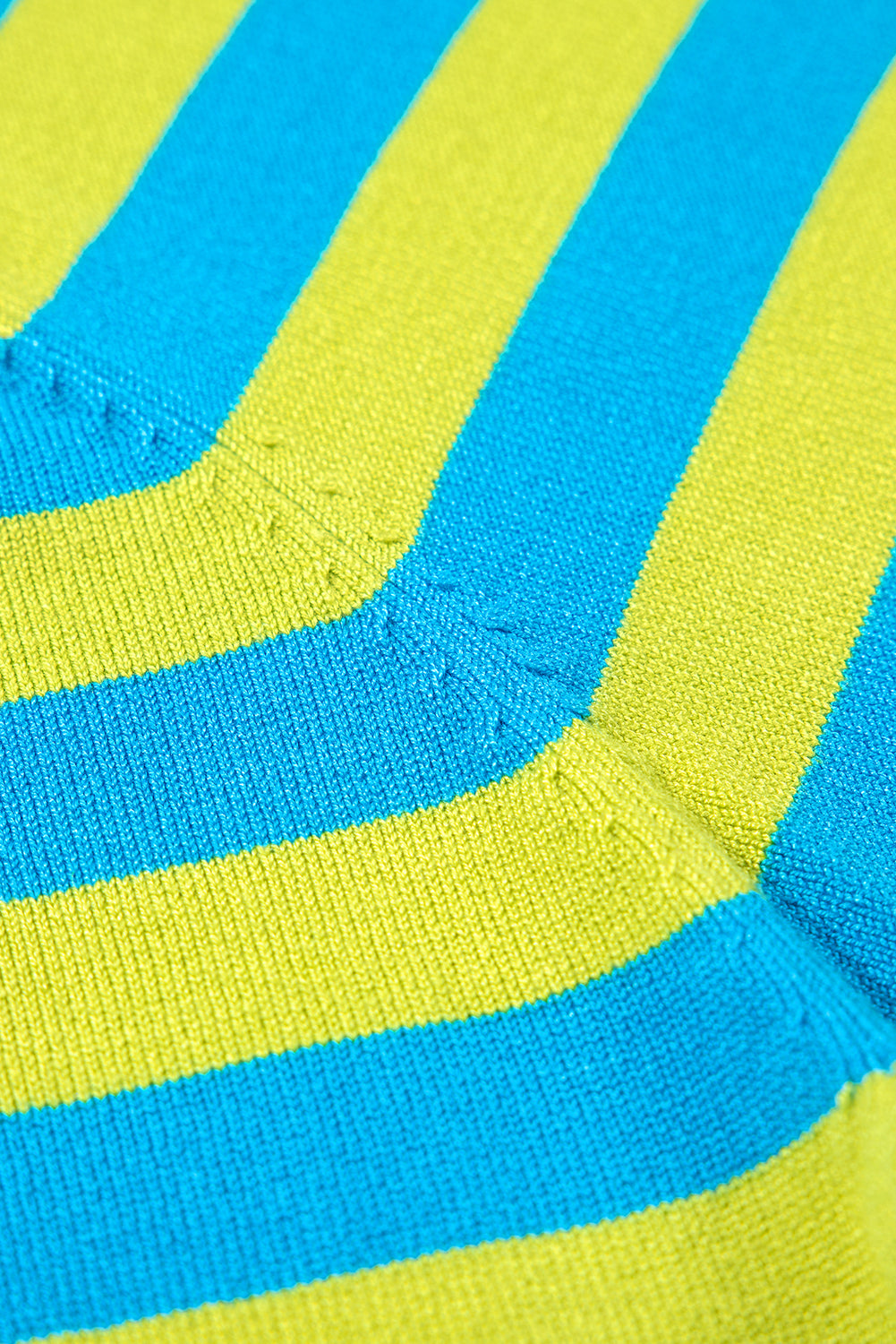 Expertly crafted with a drop shoulder design, this casual sweater features a vibrant green stripe pattern and a comfortable crew neck. Made with quality materials, it offers both style and comfort for a fashionable and relaxed look.