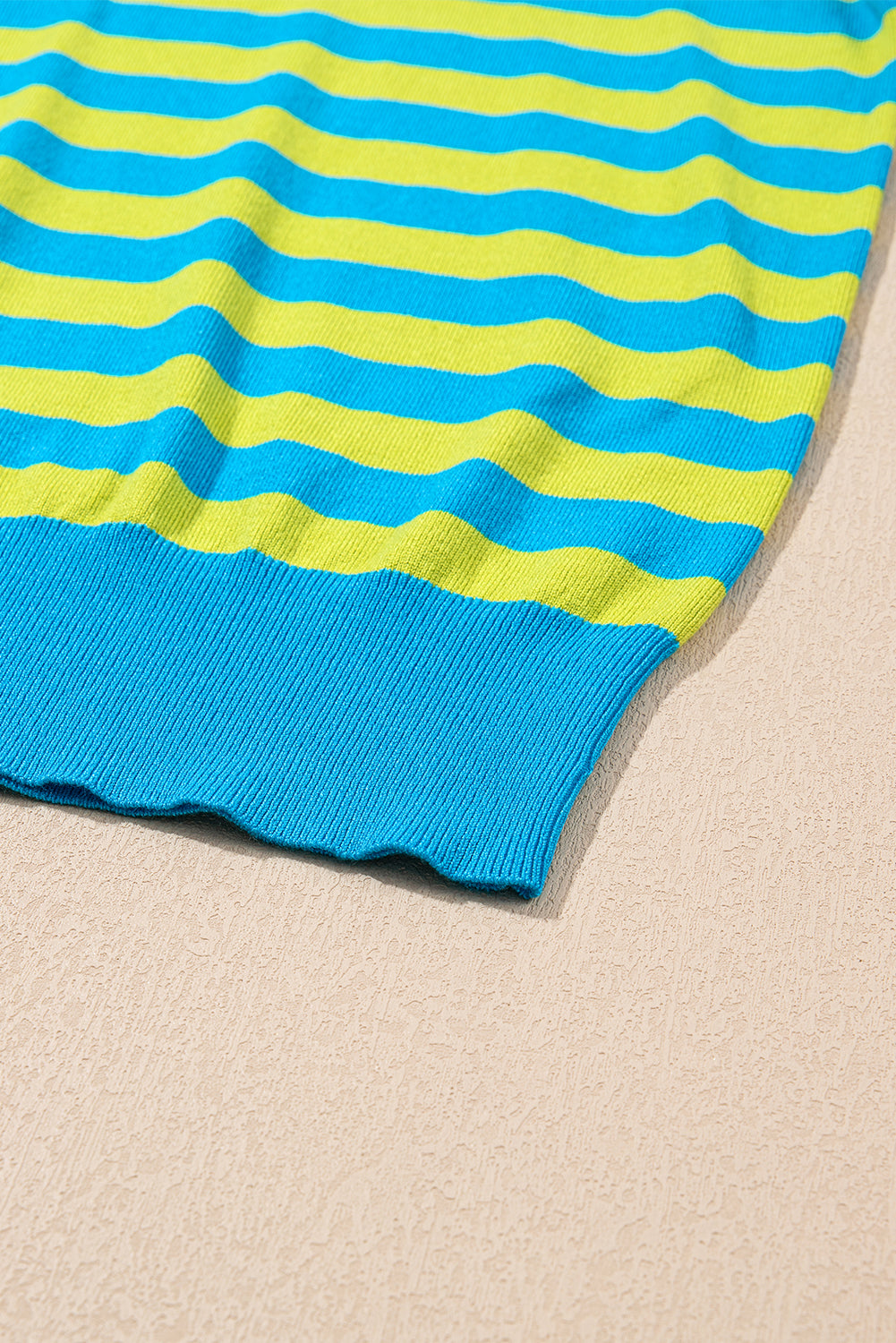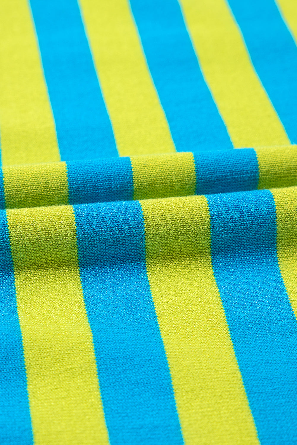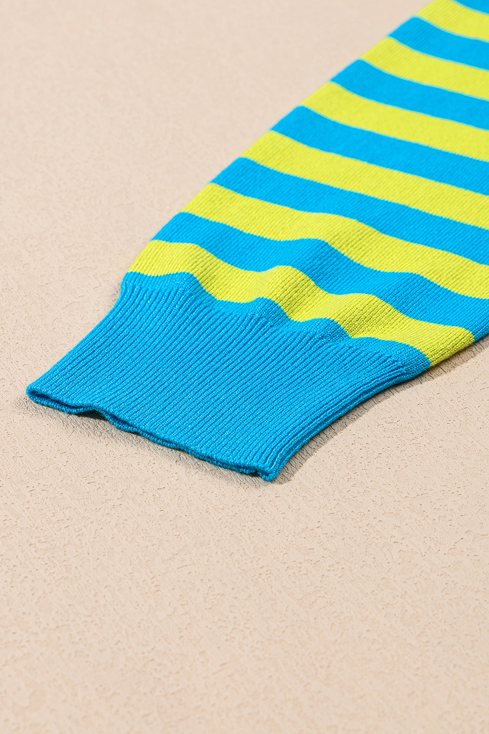 Green Stripe Crew Neck Drop Shoulder Casual Sweater