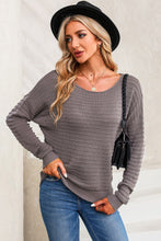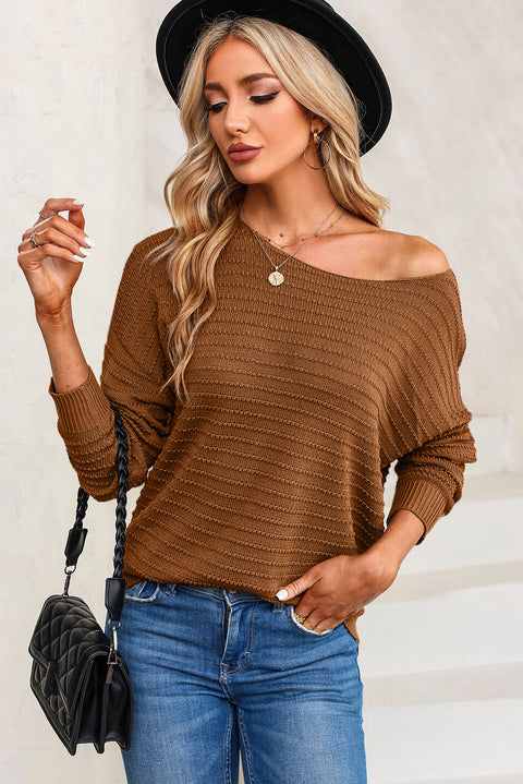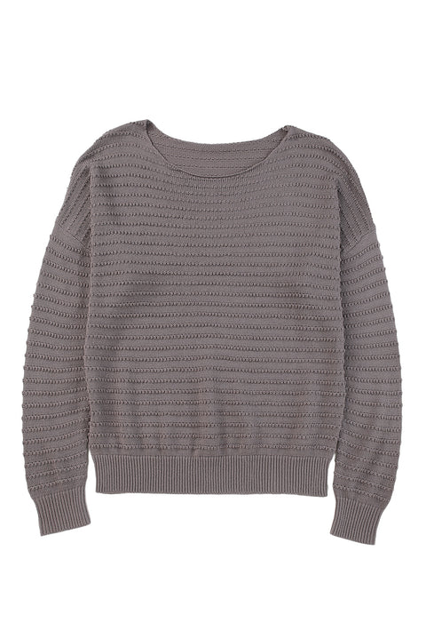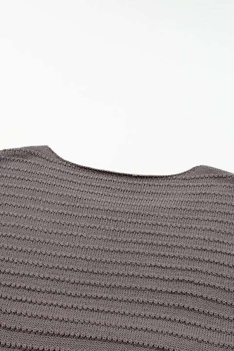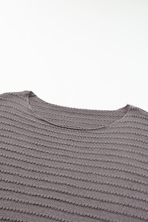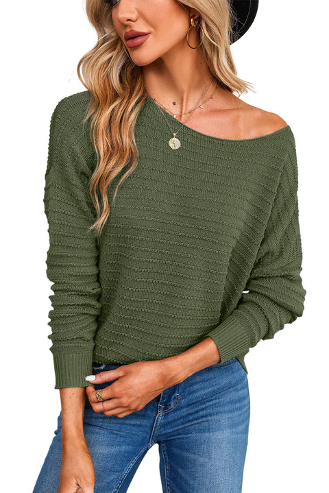 Green Textured Knit Round Neck Dolman Sleeve Sweater