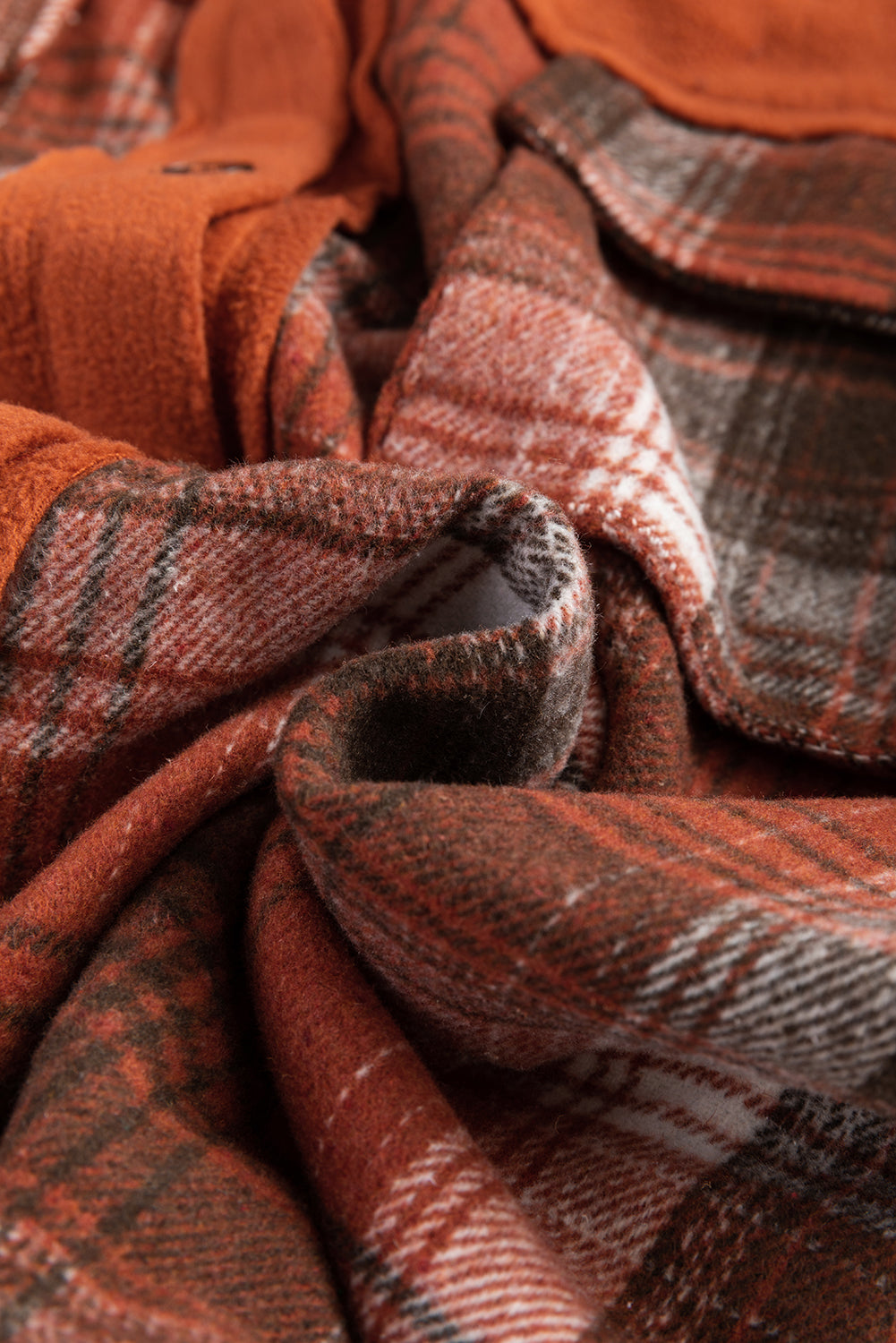 Introducing our Khaki Colorblock Plaid Pattern Flap Pockets Buttoned Shacket - the ultimate combination of style and functionality. Made with a unique khaki colorblock and plaid pattern, this shacket is a must-have for any wardrobe. With flap pockets and button detailing, it provides both convenience and sophistication. Elevate your look with this versatile and on-trend piece.