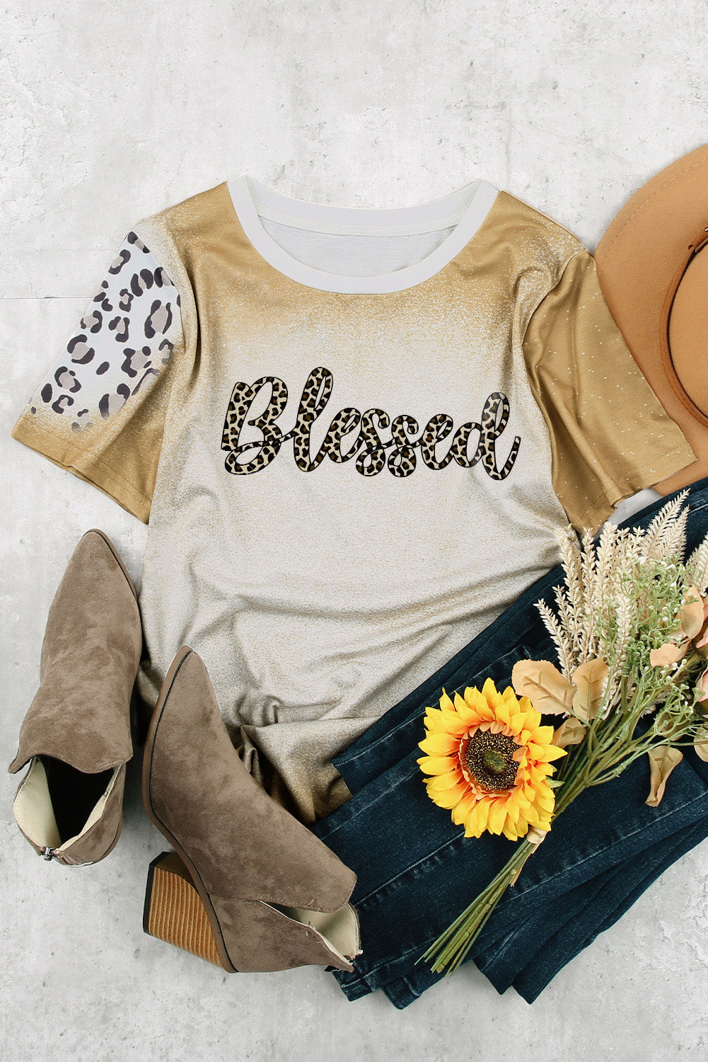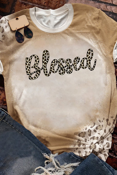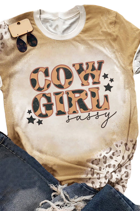 Khaki COWGIRL Cow Leopard Print Short Sleeve T Shirt