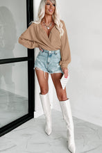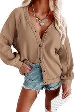 Khaki Exposed Seam Buttons Front Waffle Knit Cardigan