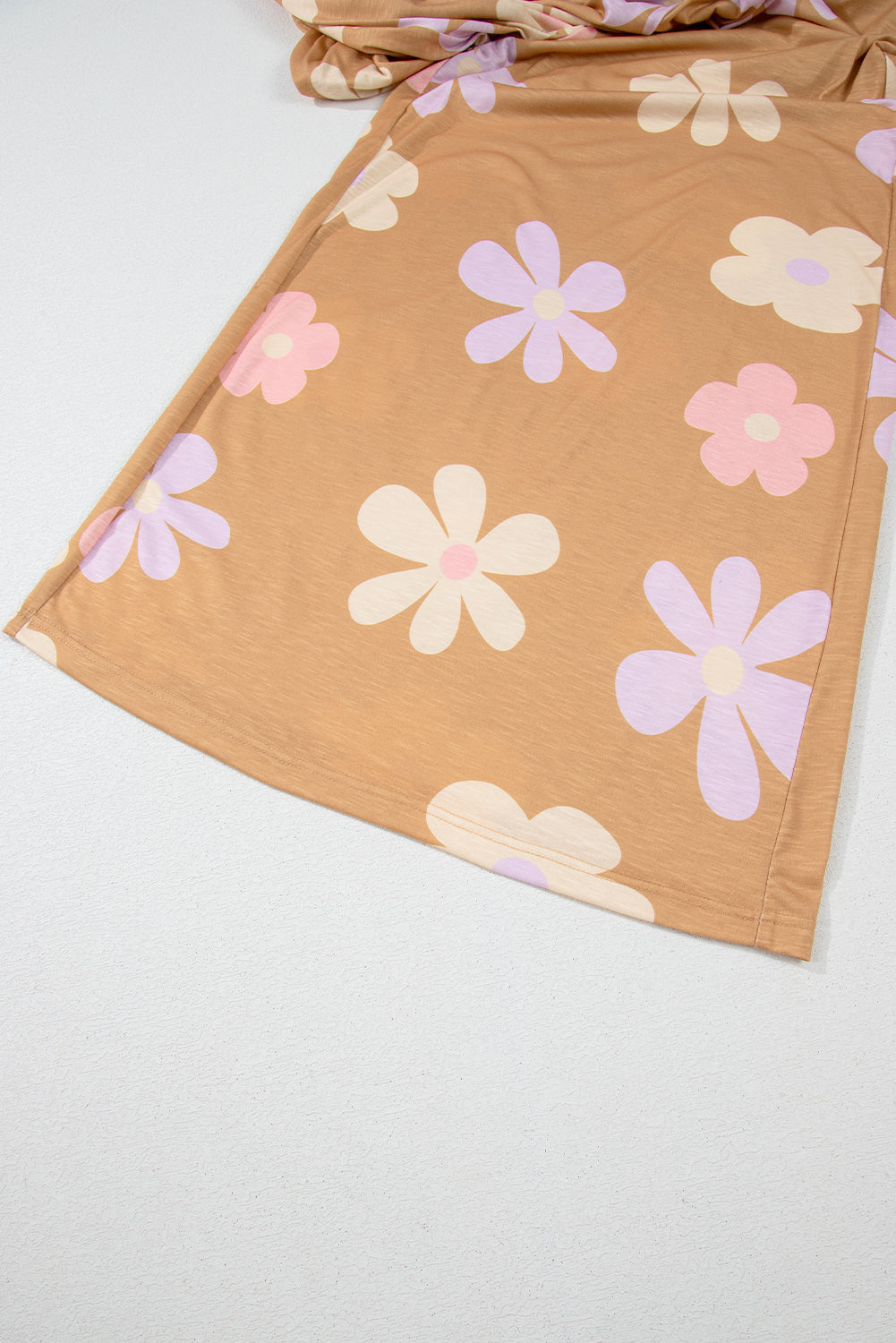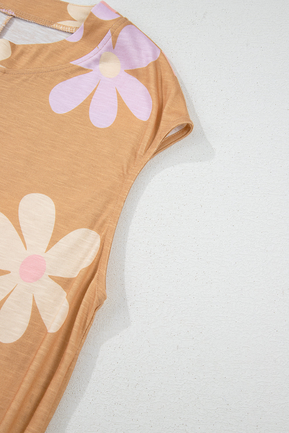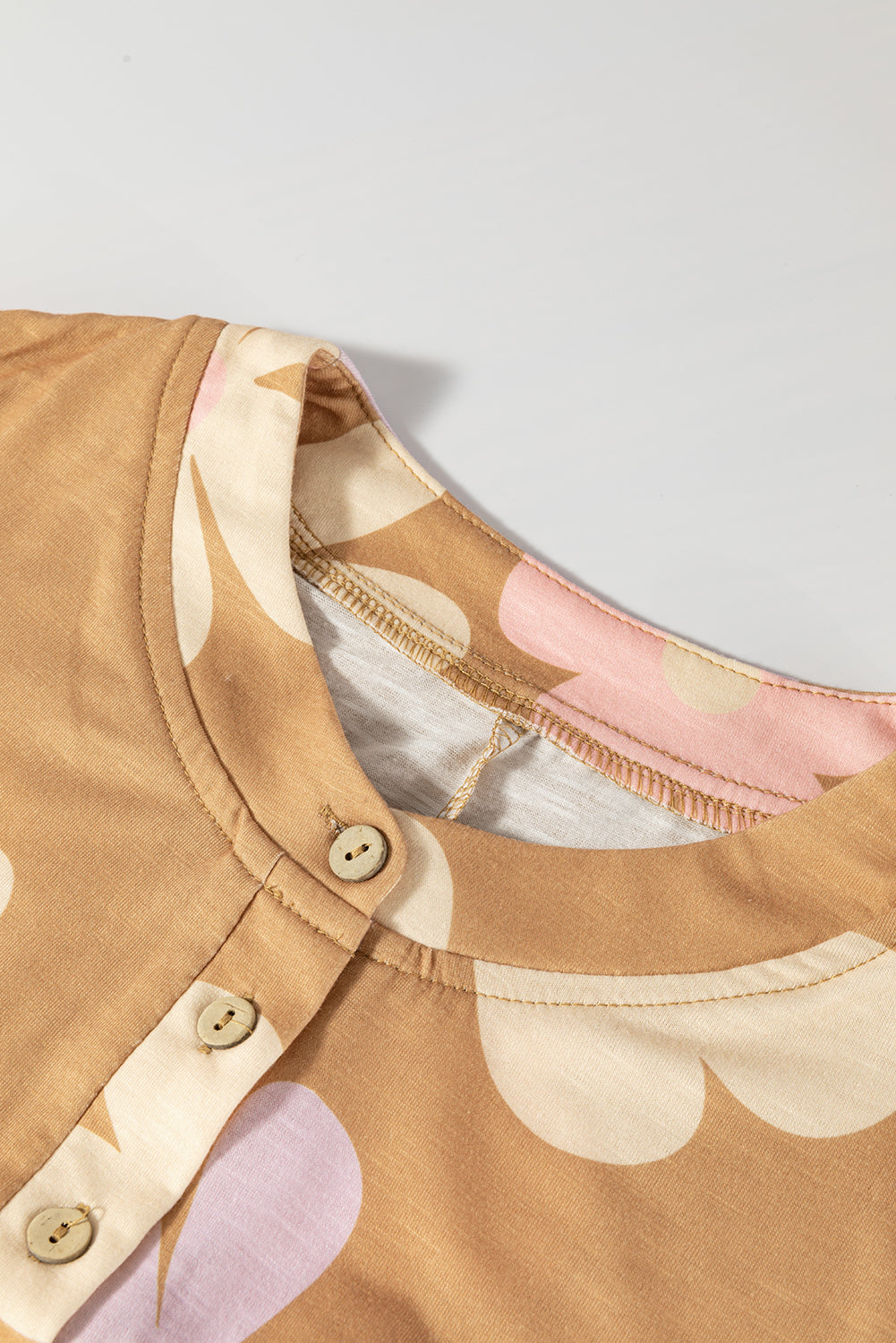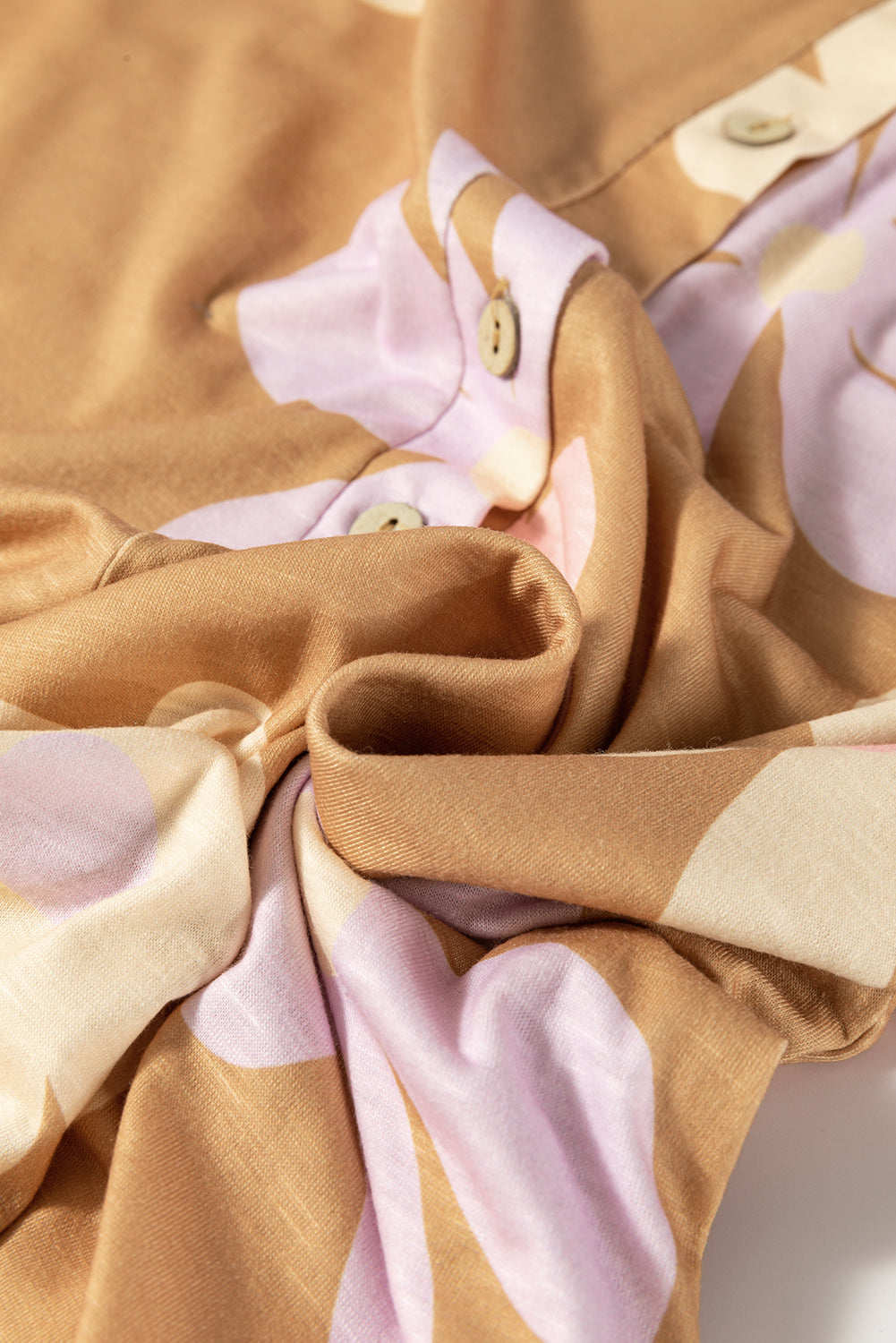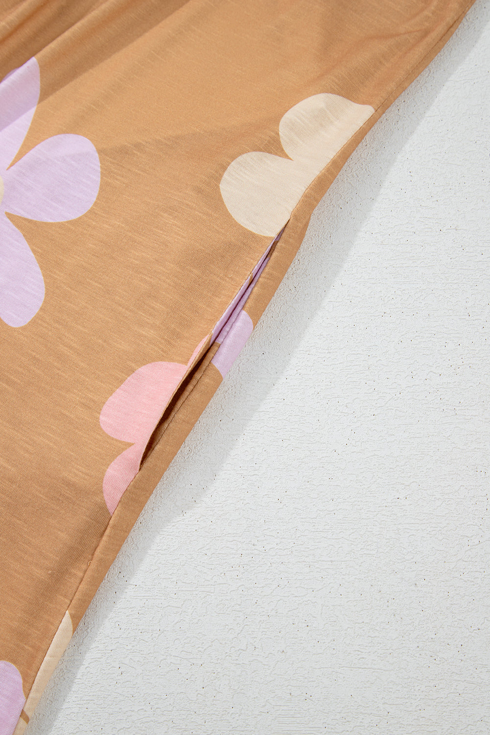 Khaki Floral Print Sleeveless Button up Wide Leg Loose Jumpsuit