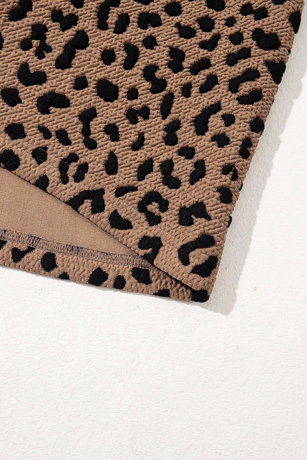 Khaki Leopard Print V Neck Sleeveless Collared Mini Dress