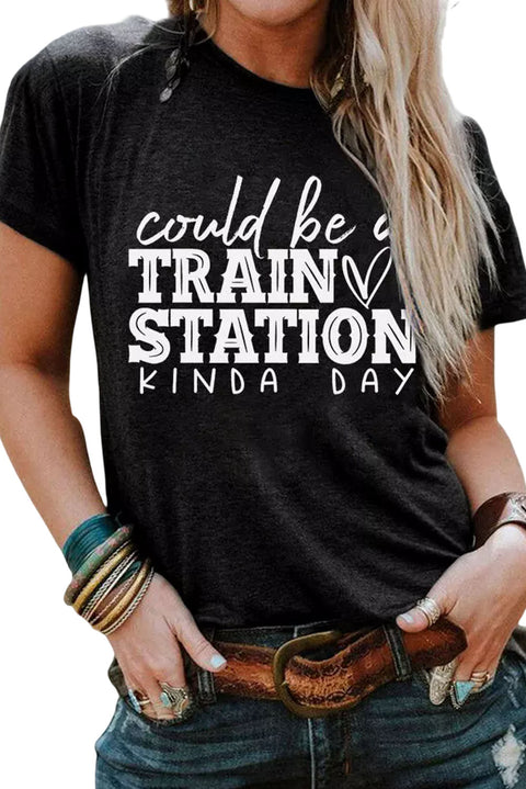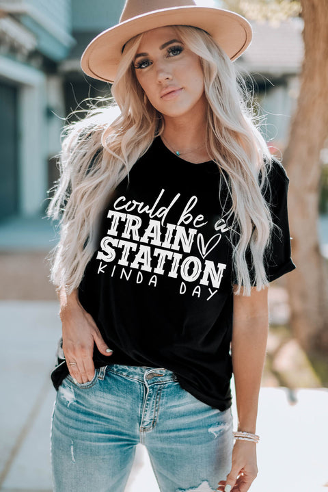 •MOMLIFE Slogan Graphic Print Crew Neck T Shirt