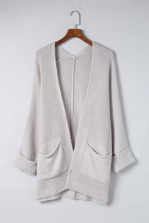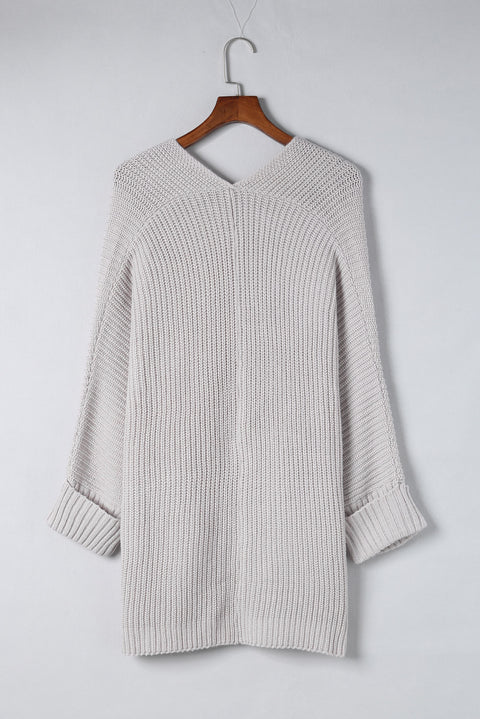 Khaki Oversized Fold Over Sleeve Sweater Cardigan