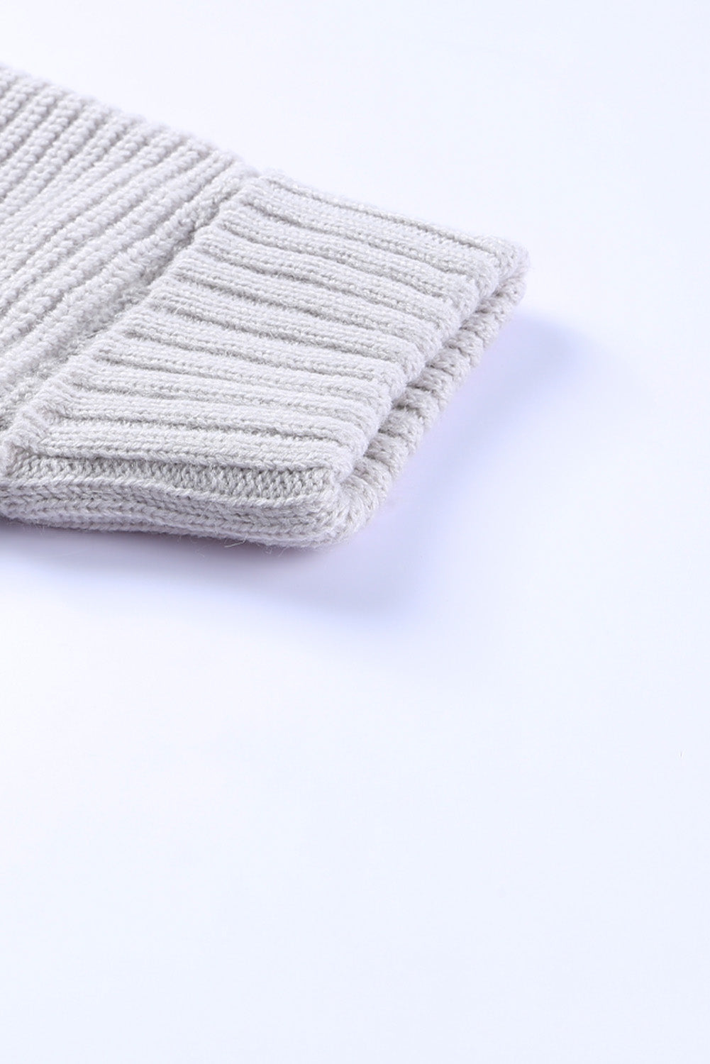 - Plain knit texture with a pair of subtle knitted patch pockets