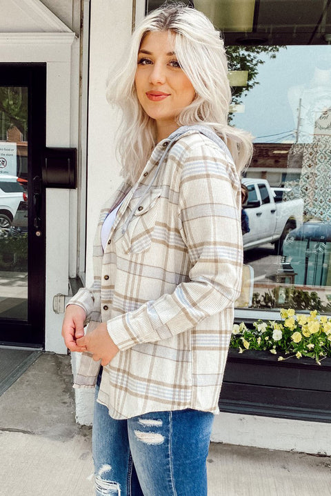 Khaki Plaid Hooded Shirt Coat