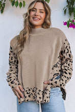 Khaki Plus Size Leopard Patchwork High Neck Sweater