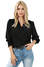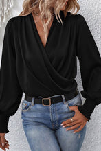 Khaki Solid Surplice Neck Shirred Cuffs Draped Blouse