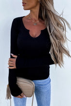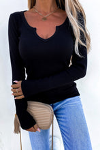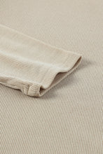 Khaki Split Round Neck Ribbed Knit Top
