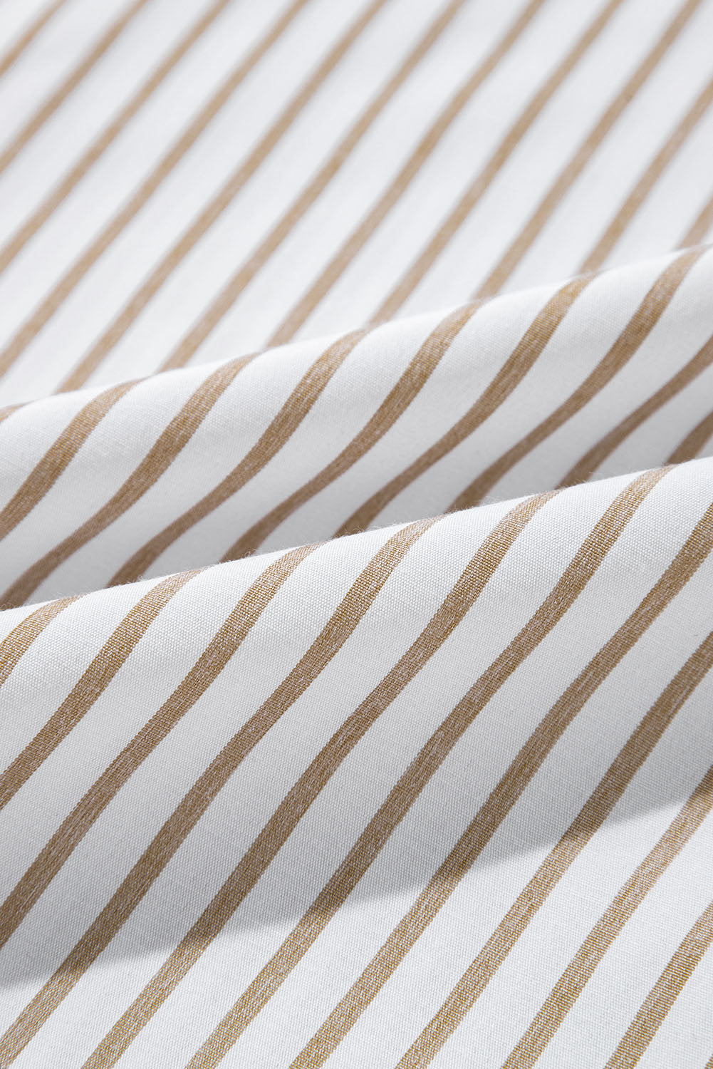 Khaki Stripe Long Sleeve Button Up Mini Shirt Dress