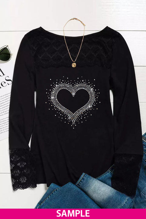 Lace Crochet Splicing O-neck Long Sleeve Top