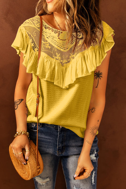 Lace Splicing Ruffled Short Sleeve T-shirt