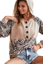 Leopard Print Buttoned Neckline Raglan Sleeve Hoodie