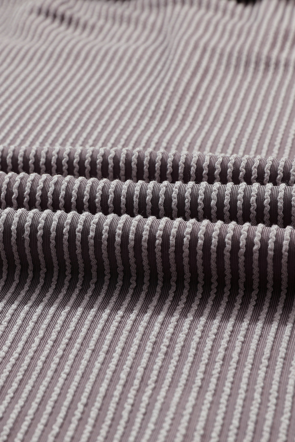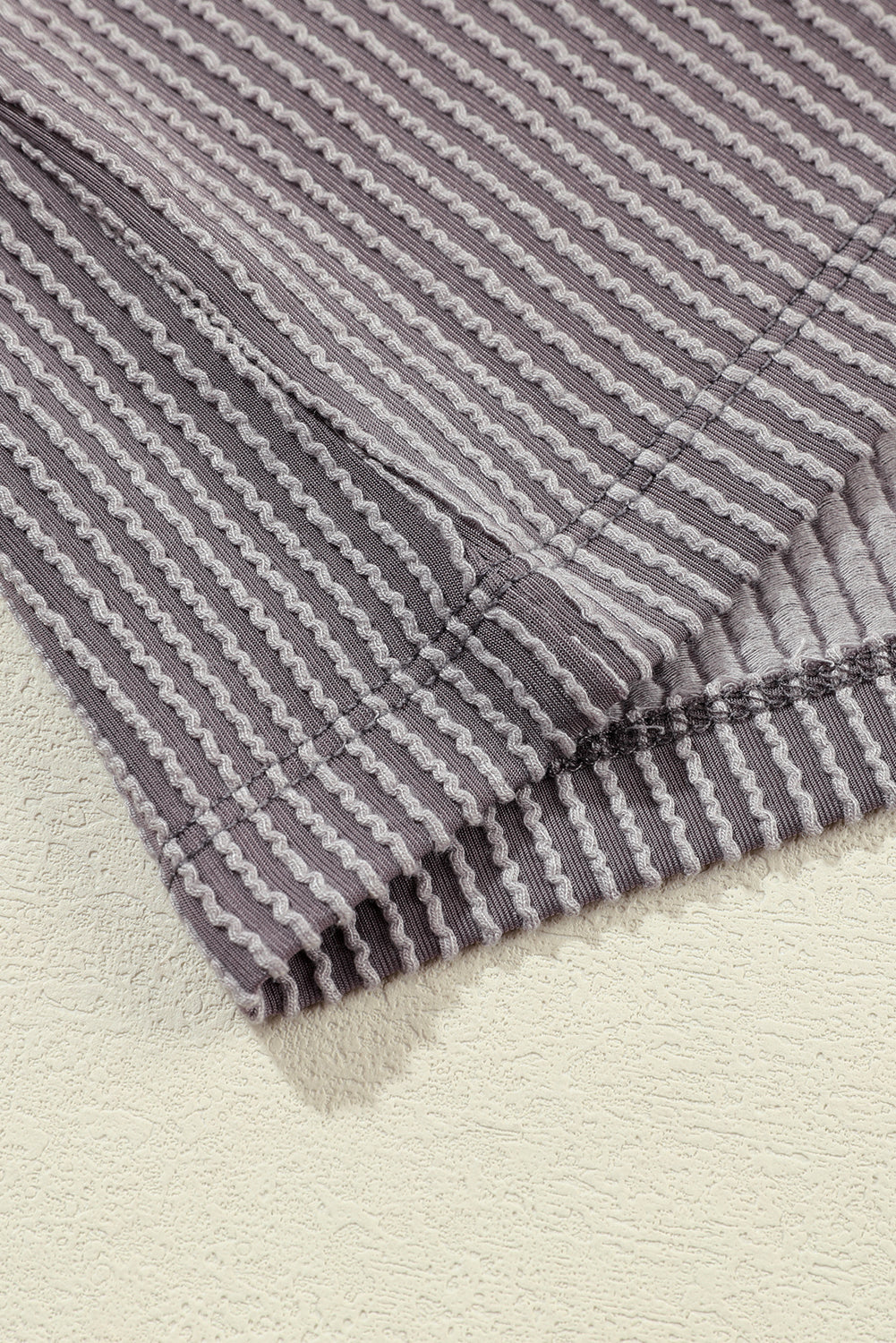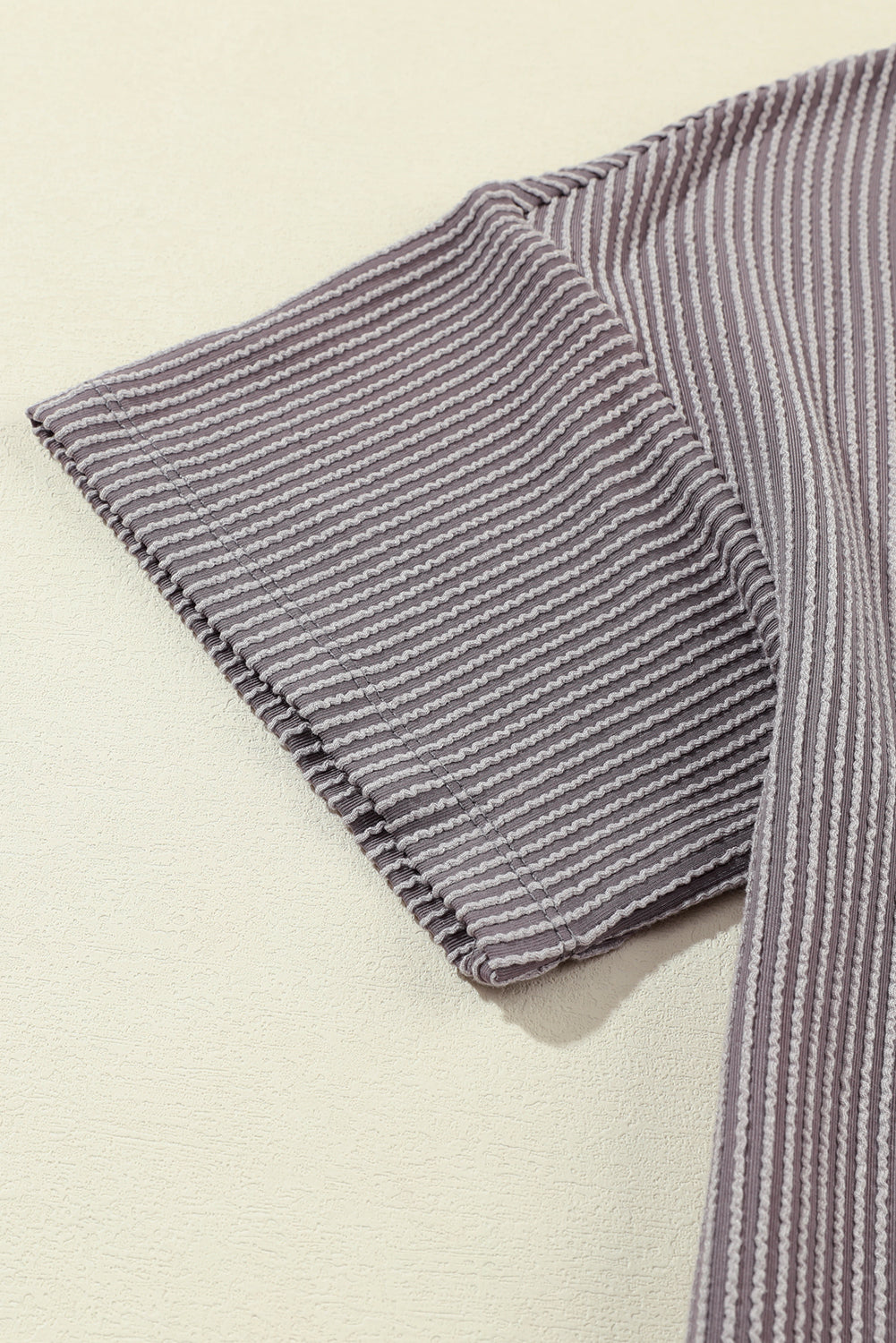 Light Grey Corded V Neck Chest Pocket Loose T-shirt