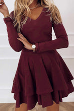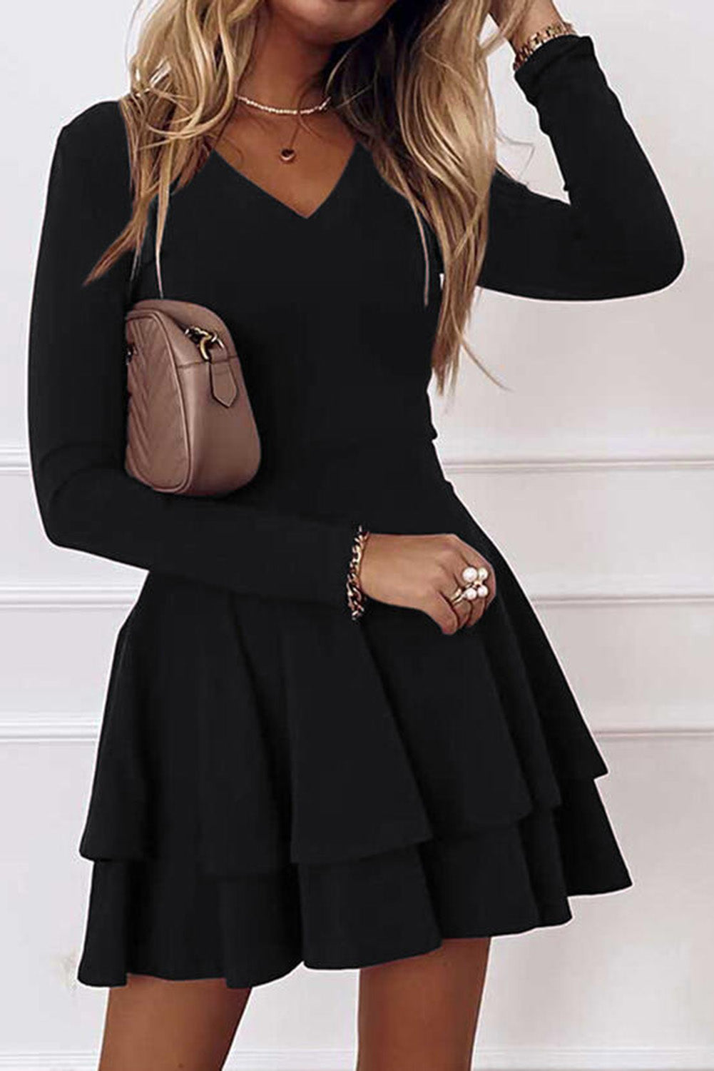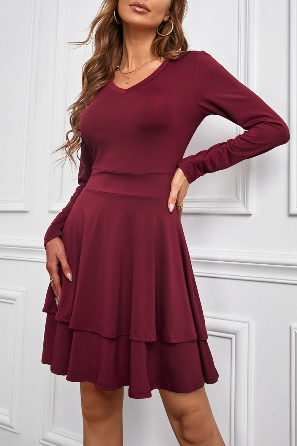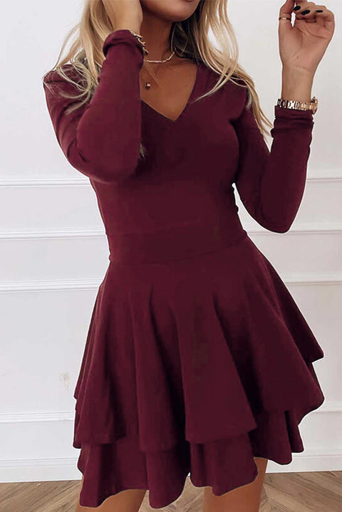 Long Sleeve V Neck Tiered Ruffle A-line Mini Dress