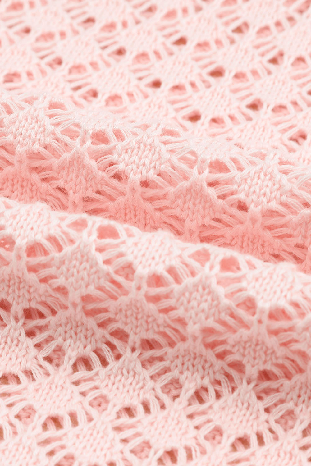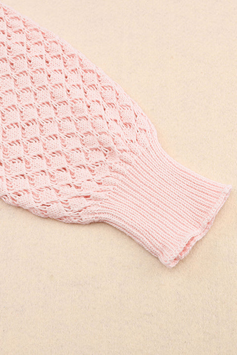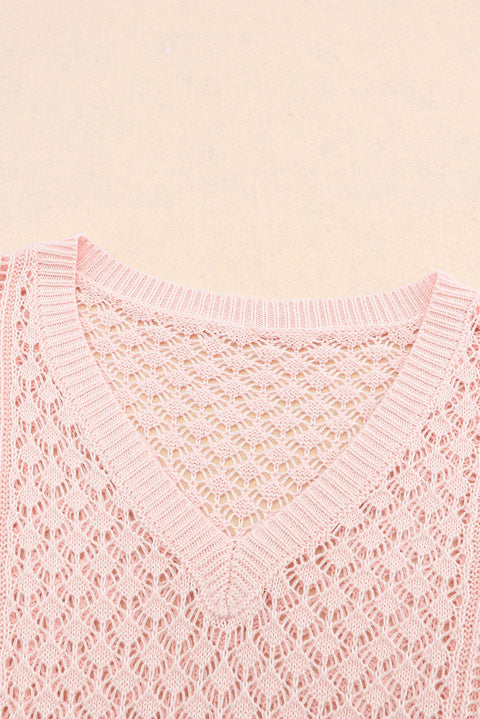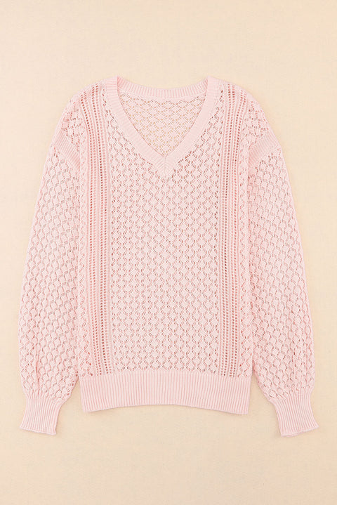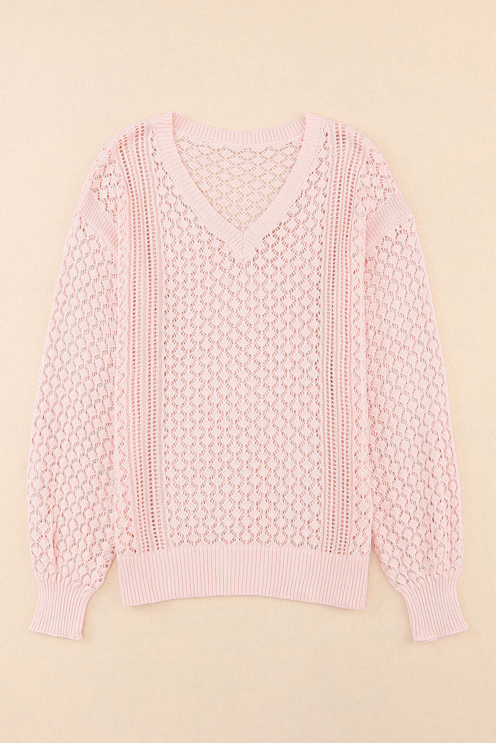 Loose Pointelle Knit Ribbed V Neck Sweater