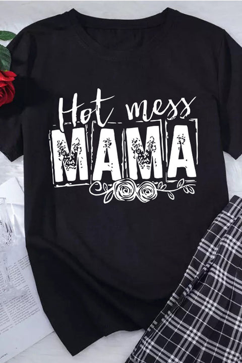 •MAMA Hot Mess Graphic Print Short Sleeve T Shirt