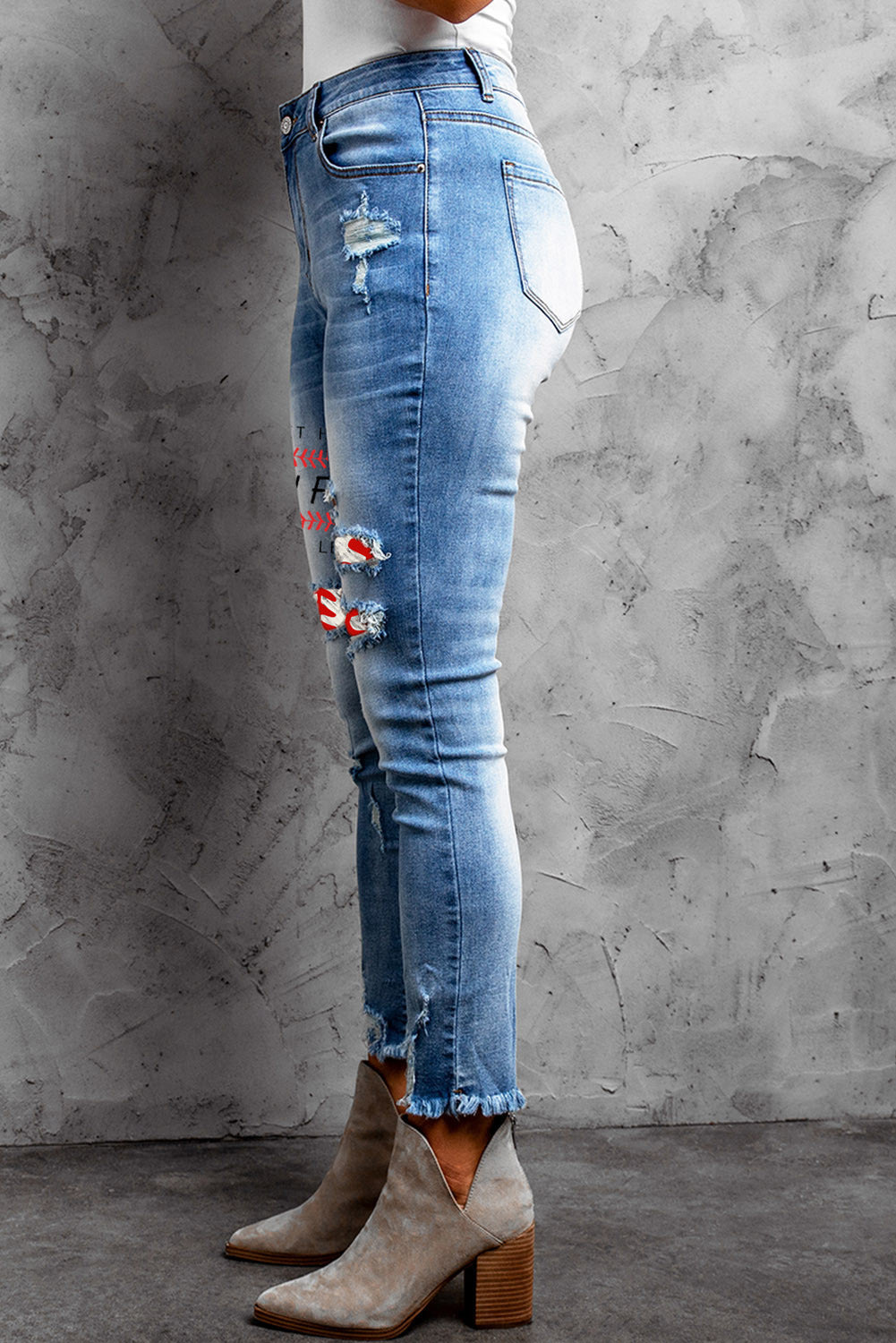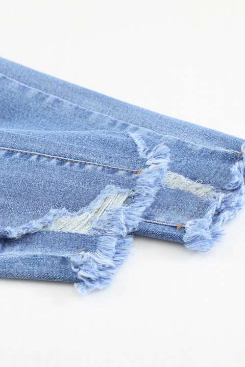•These jeans are retro and featuring ripped details and holes on the legs