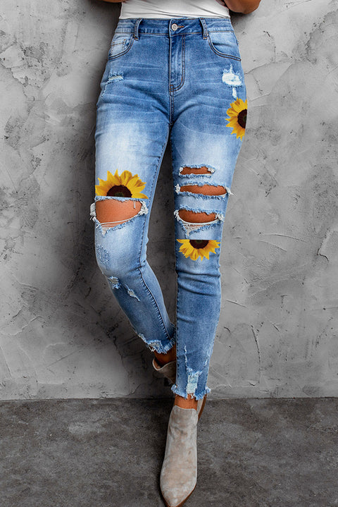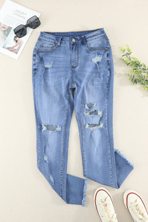 Medium Wash Distressed Skinny Ankle Jeans
