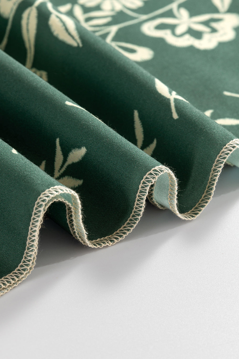 Mist Green Tie Neck Boho Floral Pattern Puff Sleeve Shift Dress