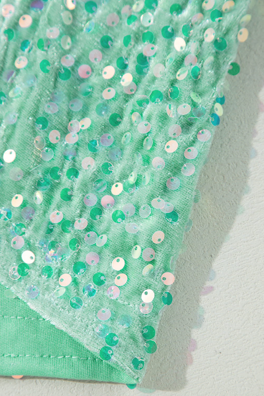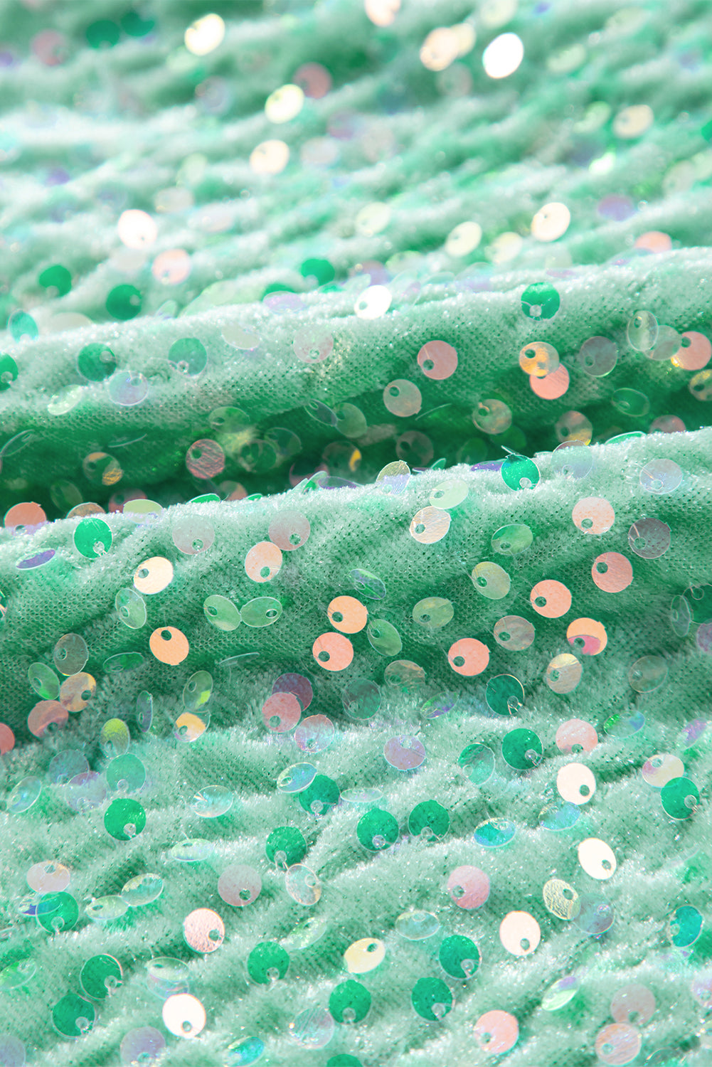 Moonlight Jade Sequin Batwing Sleeve V Neck Velvet Blouse