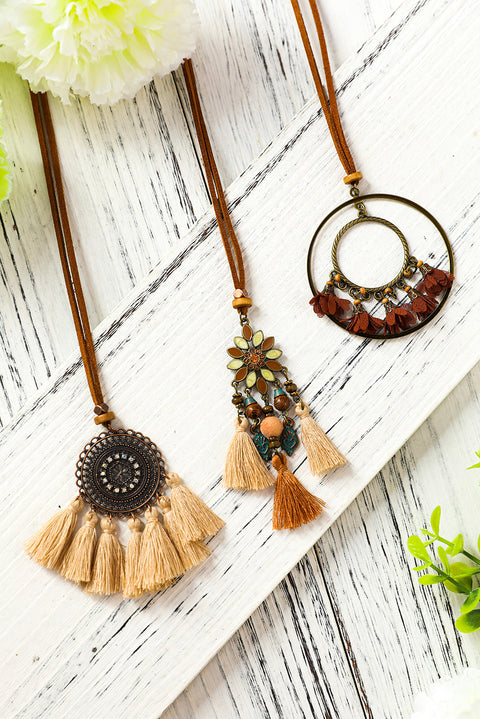 •3pcs Bohemian Retro Tasseled Pendant Necklace