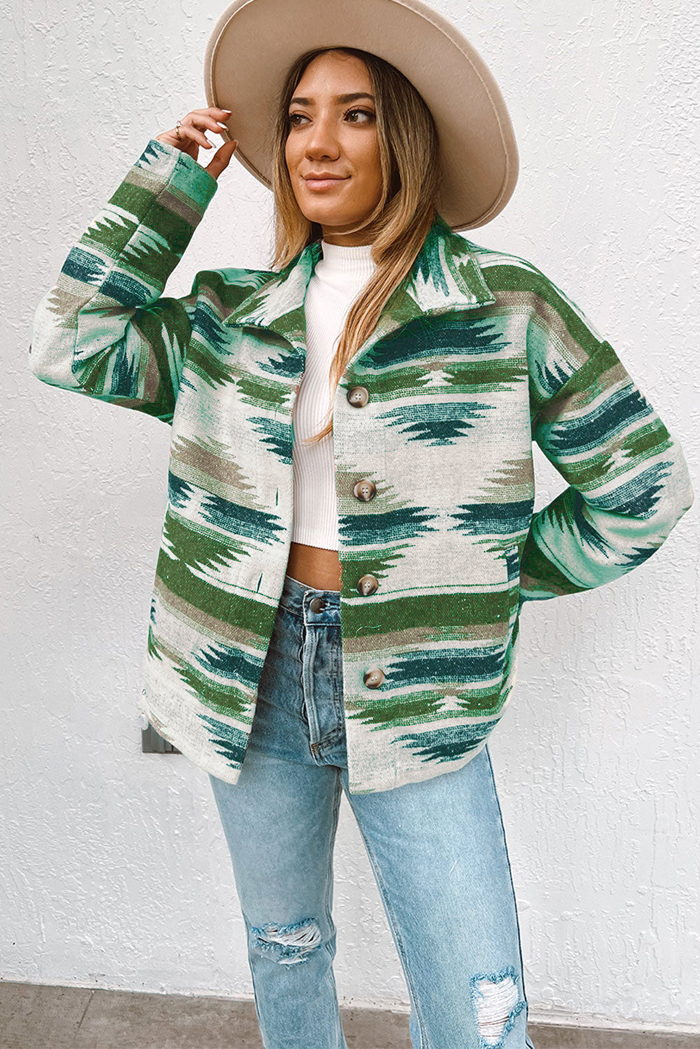 Multicolor Aztec Print Button Up Long Sleeve Jacket
